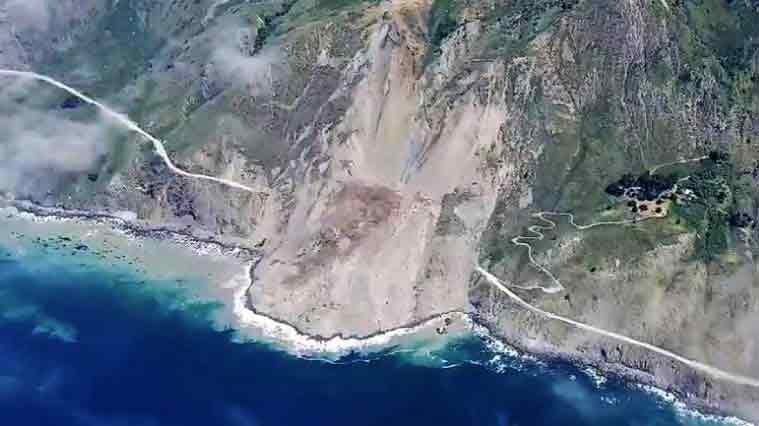 Highway 1 ist noch an mehreren anderen Stellen nach schweren Stürmen im letzten Winter gesperrt.