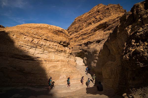 Mosaic Canyon ist ein schmaler Canyon mit glatten Marmorwänden, die durch Sturzfluten abgeschliffen und poliert wurden. Alternative Wanderungen umfassen den unteren Titus Canyon, den Fall Canyon, den Golden Canyon und die Natural Bridge.