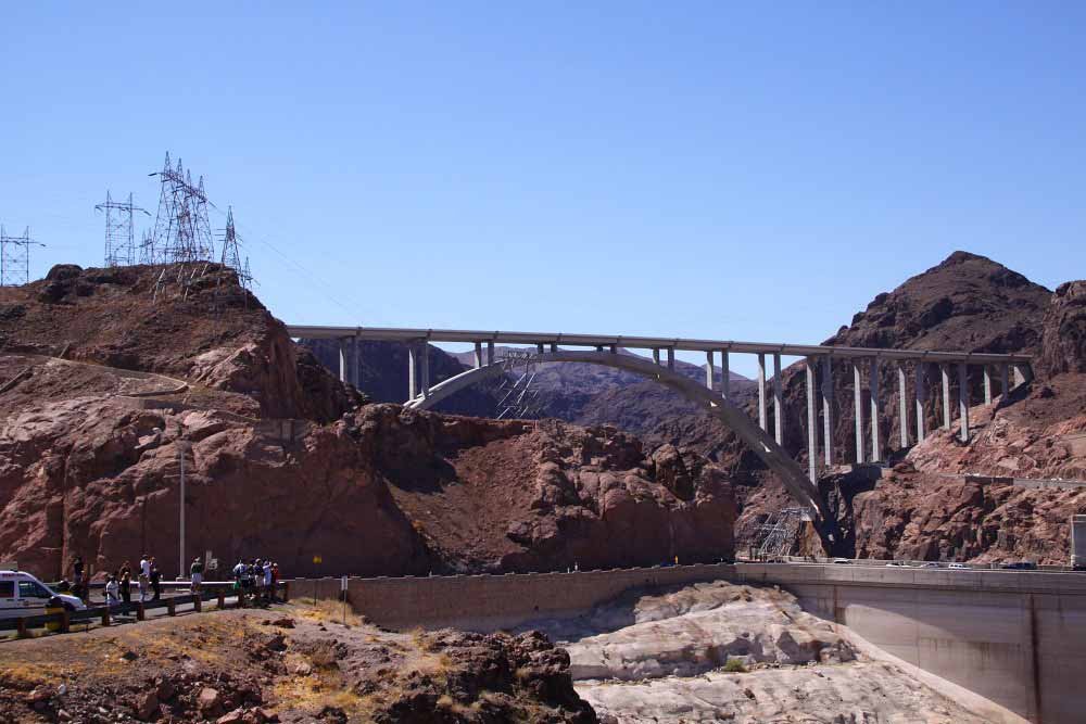 Nach mehr als acht Jahren Bauzeit öffnet diese Woche die neue Highwaybrücke am Hoover Dam. Das 240 Millionen Dollar teure Bauwerk überquert oberhalb des Staudamms die Canyonschlucht und verkürzt die Fahrzeit um bis zu 30 Minuten da hier keine Sicherheitschecks und keine Geschwindigkeitsbegrenzung wie auf der Dammkrone nötig sind.