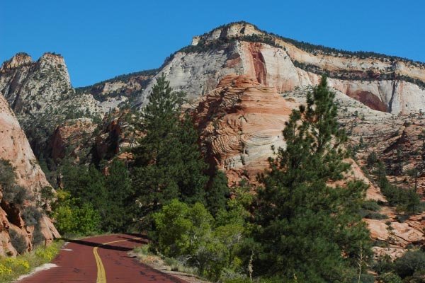 Seit Montag wird auf einem 9,5 Meilen langen Abschnitt zwischen der Abzweigung vom Zion Canyon Scenic Drive und dem Osteingang des Parks die Fahrbahnoberfläche versiegelt. Bereits in 2010 wurde diese Strecke mit schwarzem Asphalt geteert. Die neue Oberfläche besteht aus einer Mischung aus Öl und roter Vulkanasche, die der Straße wieder ihre charakteristische rote Farbe verleihen wird. Die Arbeiten werden nach Parkangaben voraussichtlich zwei Wochen andauern.