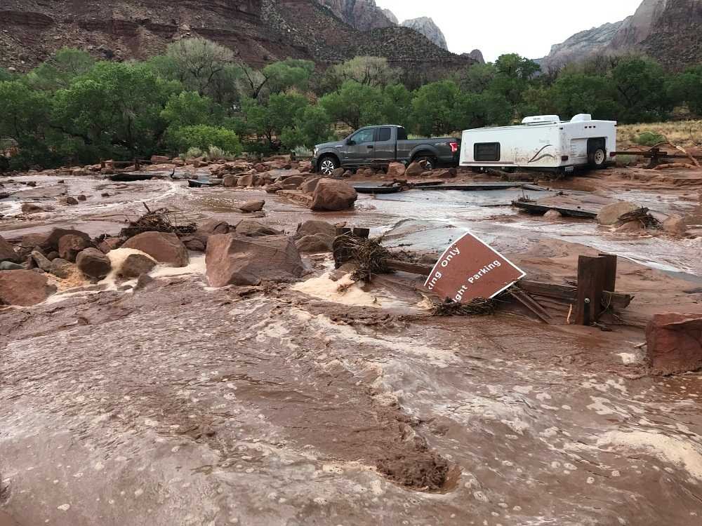 Heute Nachmittag regnete es im Zion National Park innerhalb einer Stunde etwas mehr als einen Zentimeter. Aufgrund der daraus resultierenden Sturzflut und einer aktiven technischen Such- und Rettungsaktion ist SR-9 im Park für den ankommenden Verkehr gesperrt.